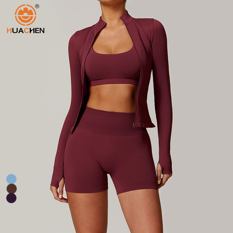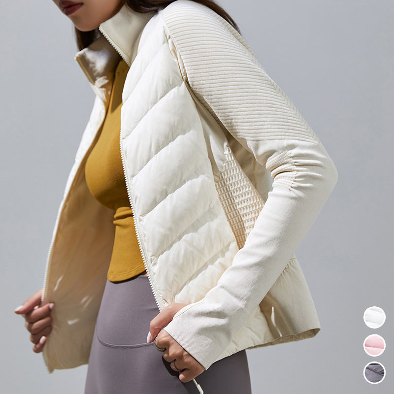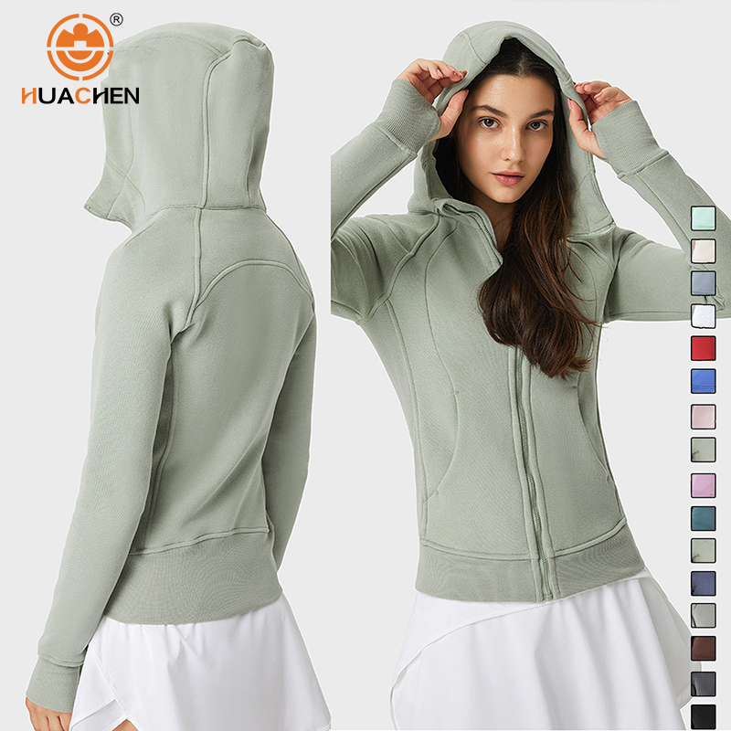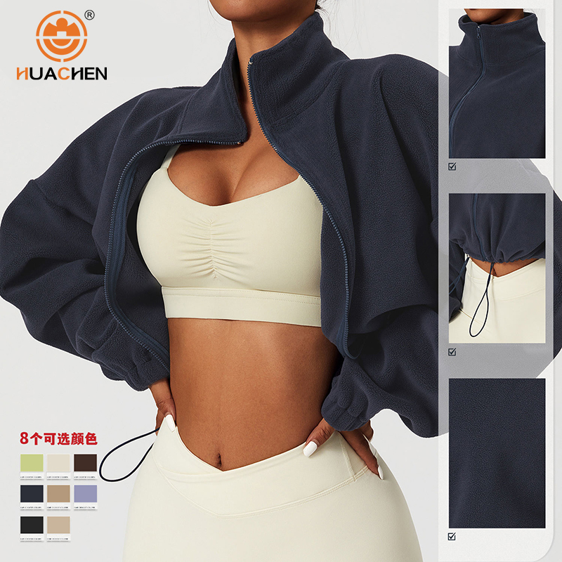Women Jacket Custom Logo Fleece Long Sleeve Yoga Top Winter Workout Windproof Coat Running Sports Fitness Stand Color Slim-fit