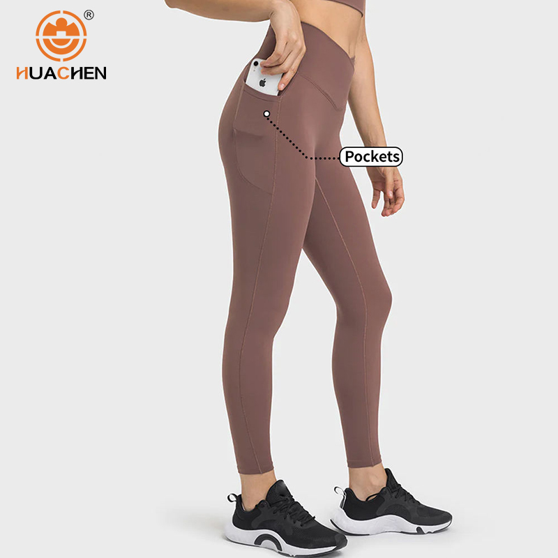 Women Crossover Waist Butt Lfiting Sports Yoga Pants Gym Fitness Leggings With Pockets