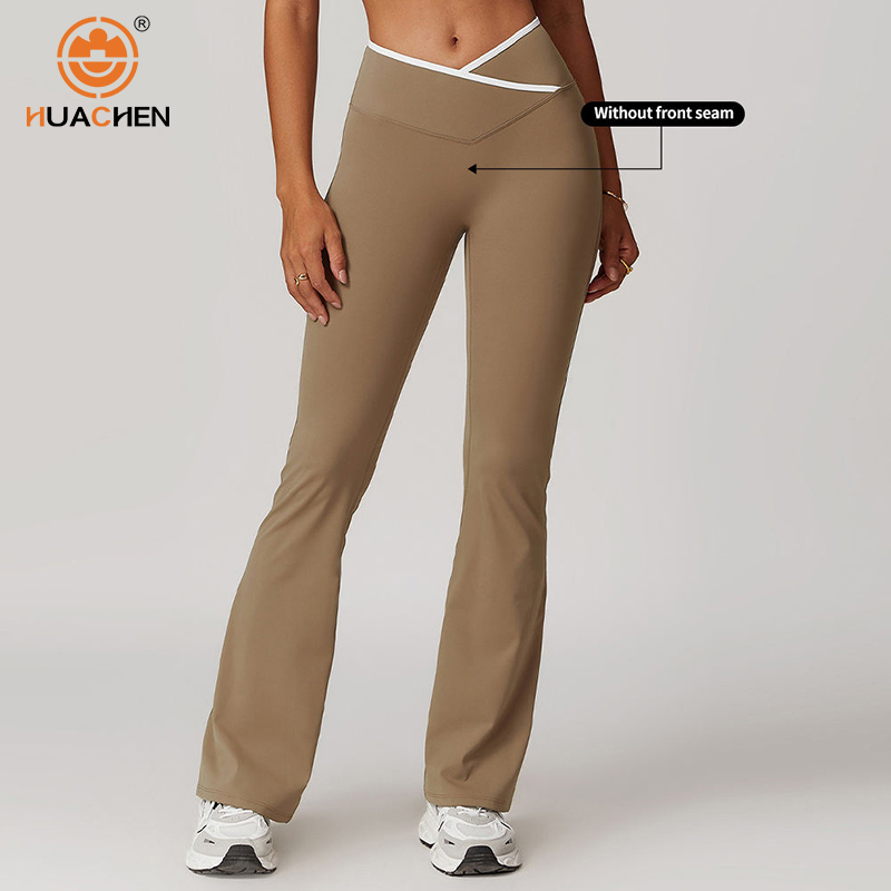 Custom Woman Cross High Waist Wide Leg Flared Sports Leggings Gym High Quality Yoga Tights Leggings for Women