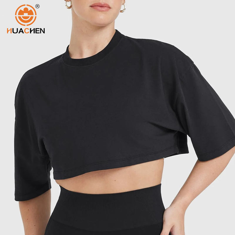 OEM Sexy Ladies Relaxed Fit Custom logo Short Soft Lightweight Active Workout Oversized Gym Cropped Tee t Shirt Women