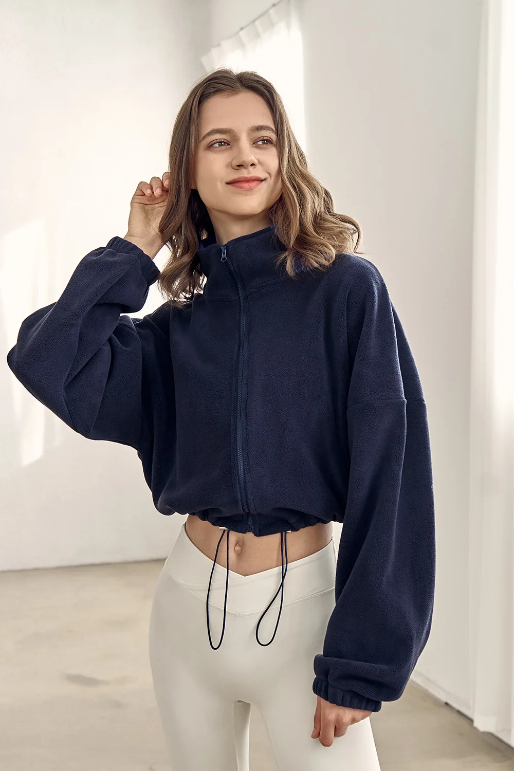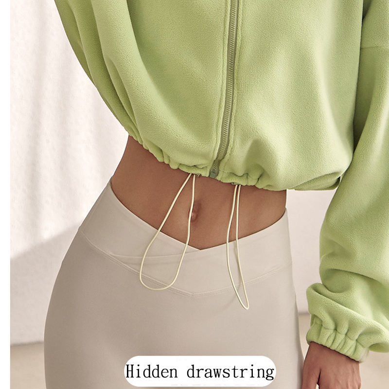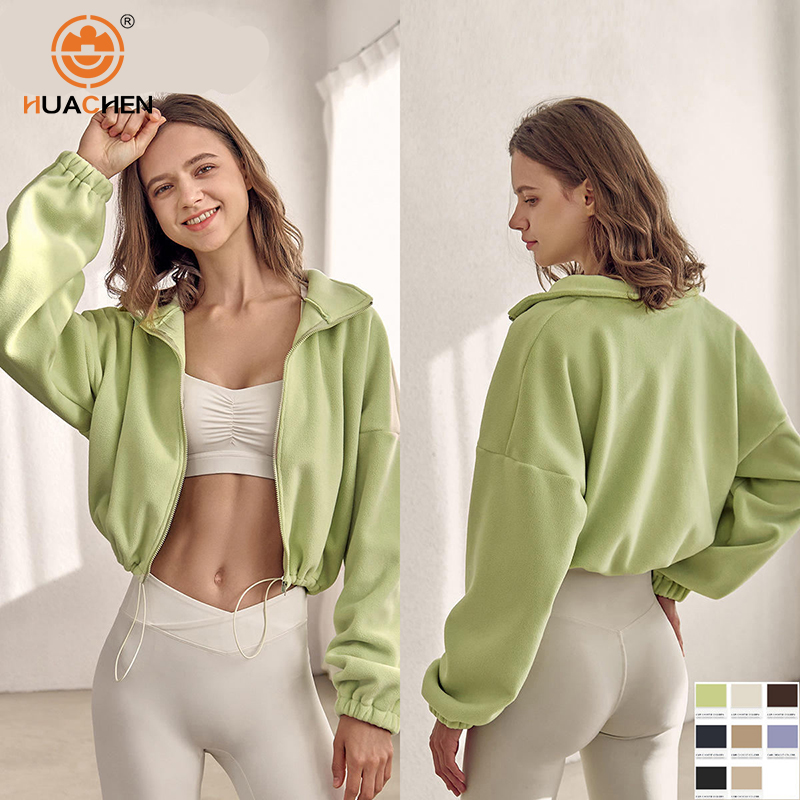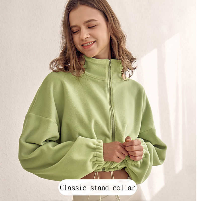 Full Zipper Women's Fleece Jacket Polar Outdoor Stand Collar Sweater Lantern Sleeve Fitness Jacket Coat Cropped Tops for Women