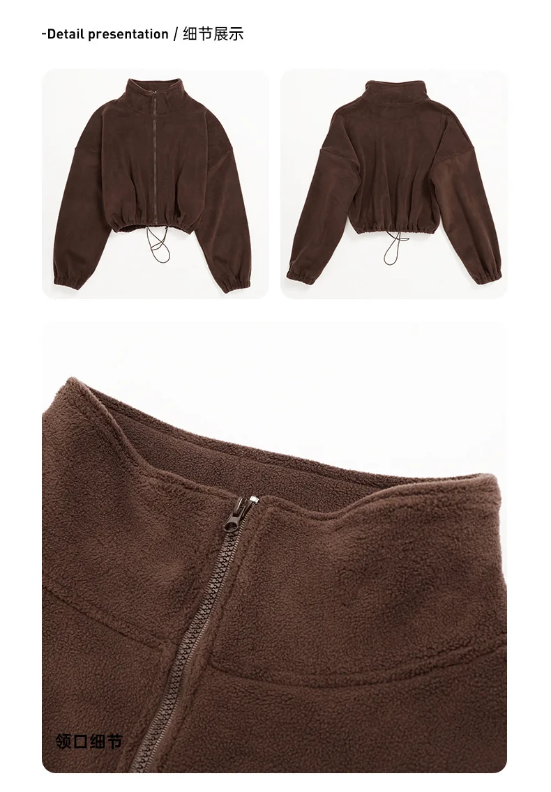 Women's Outdoor Autumn Collar Polar Fleece Jacket Spring and Winter Polyester Fleece Coat Cropped Tops For Women |