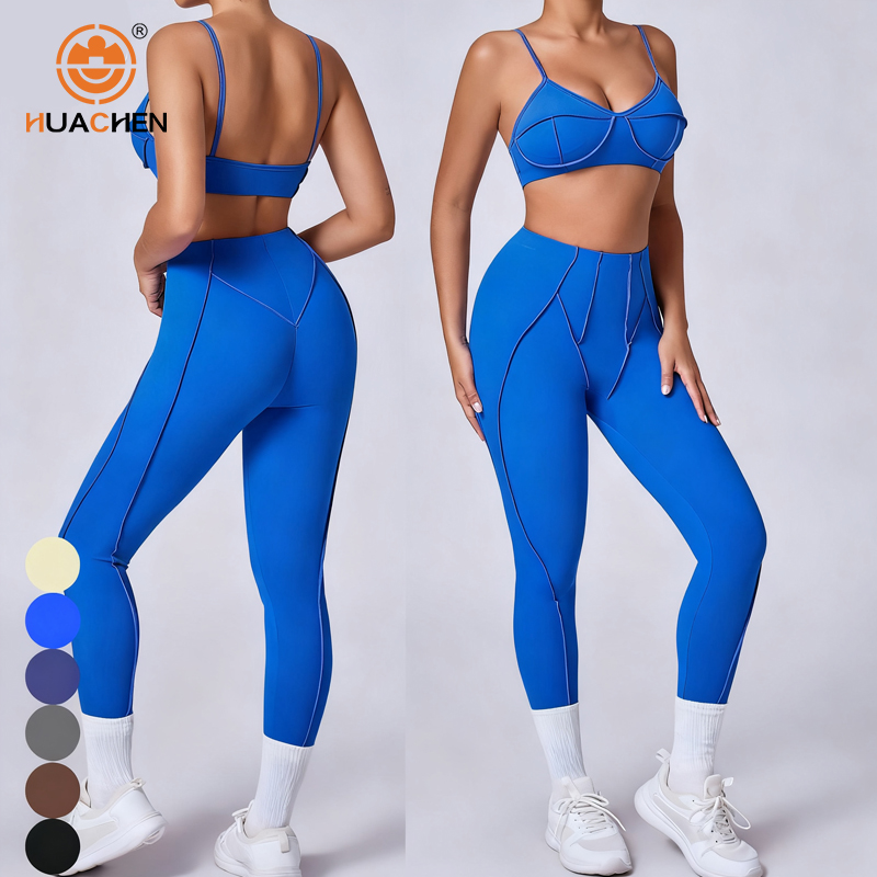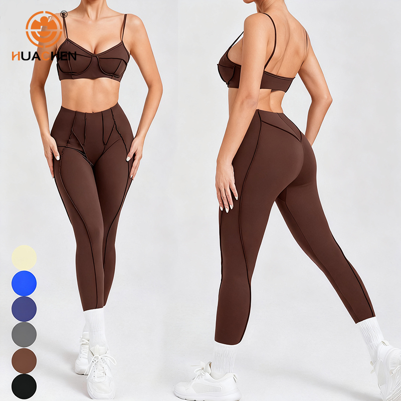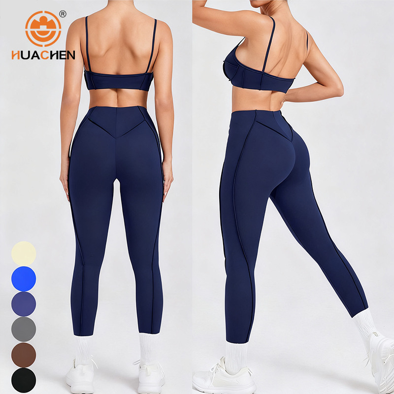 New 2025 New Listing Yoga Leggings Set Wholesale Custom Solid Color Sports Wear Suit Push up Bra and Hip Lift Pants for Women