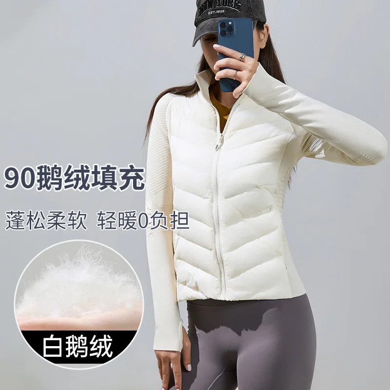 2025 New Slim-fit Windproof Warm Winter Coat Outdoor Sports Yoga White Goose Down Jacket Lulu Ski Suit Outdoor Running Jacket